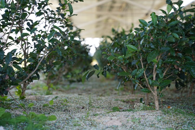 そして、ソーラーパネルと地面の間に約1~2メートルほどの高さの空間があることに着目し、そこで茶葉の栽培をスタート。実は、茶葉は栽培過程において、「被覆(ひふく)栽培」と呼ばれる栽培方法があり、新芽段階で一定期間遮光環境で育てる時期がある特徴的な作物です。この過程で旨味や甘みを引き出すのですが、ソーラーパネルの下という遮光環境を活用することにし、茶葉の栽培を行う運びとなりました。