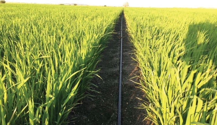 湛水(たんすい)による従来の水田潅水とは異なり、点滴潅水はパイプを通じて水を根元に直接届けます。この方法は、水の消費量を最大50%削減し、収穫量を少なくとも25%増加させる可能性があります。
