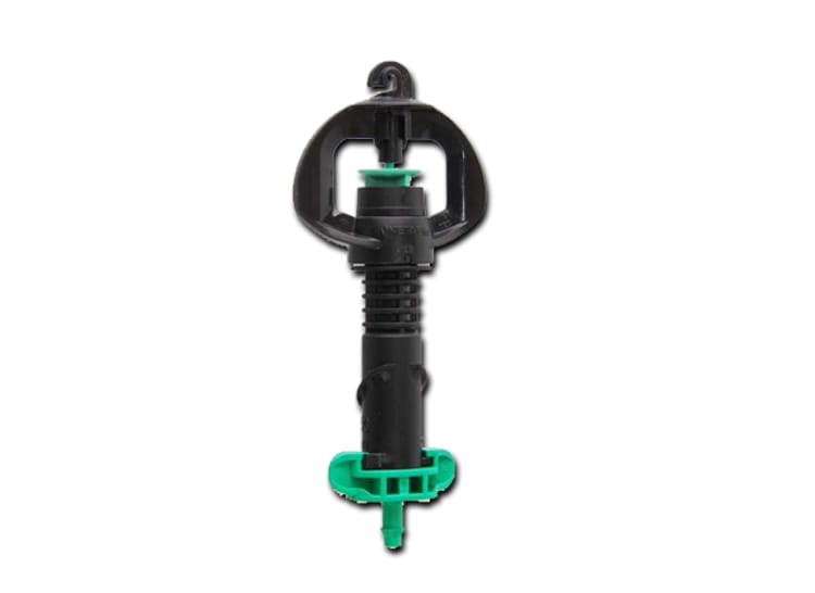 SuperNet™ UD flow-regulated “upside down” mounted micro-sprinkler, keeps the ground clear preventing sprinkler damage by field machinery.